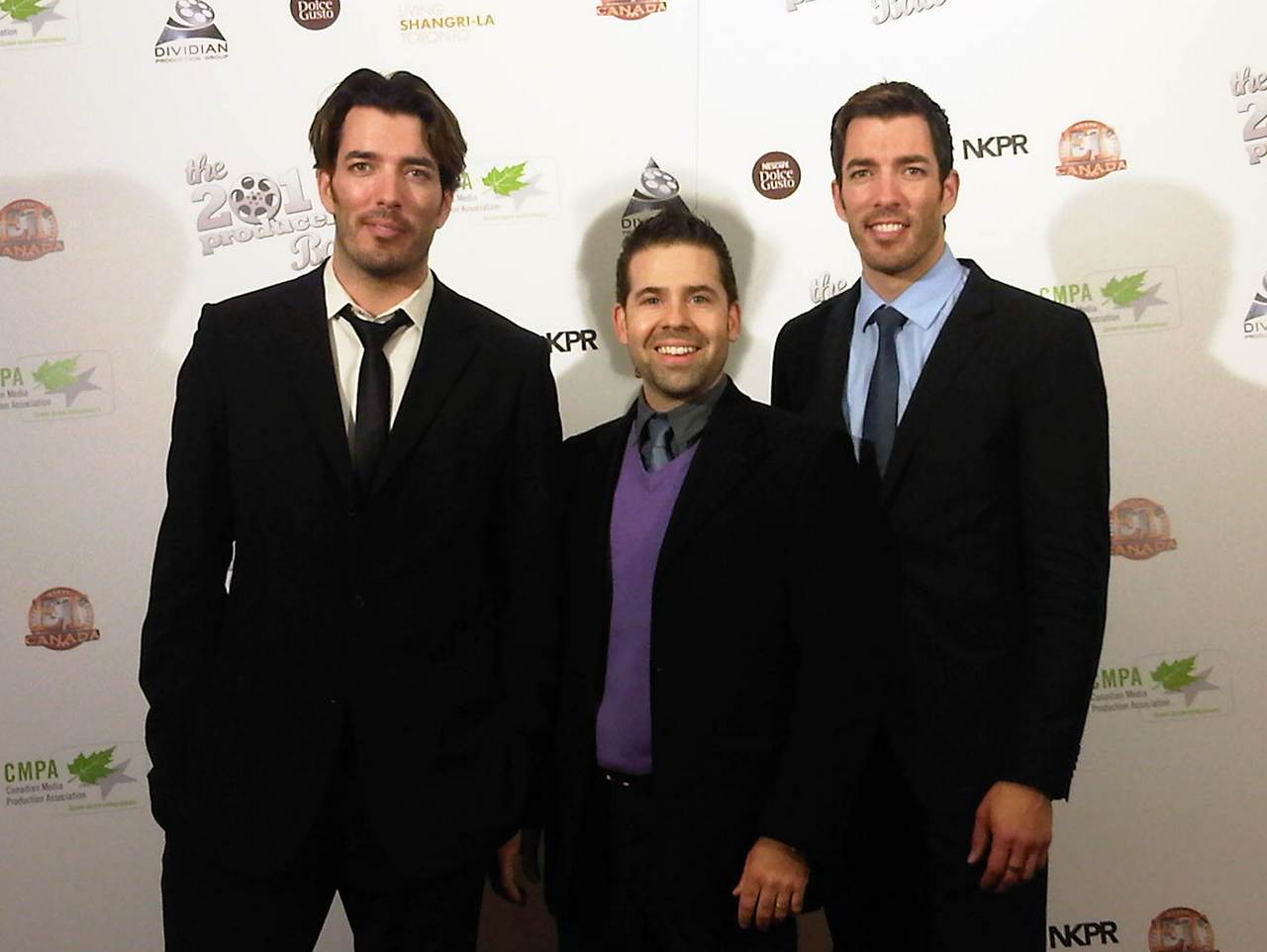 The Property Brothers from HGTV may seem all nice and stuff on TV, but they made Matt stand in a hole for this shot. Like, for real. |